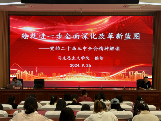 为全面深入学习宣传贯彻党的二十届三中全会精神,坚持不懈用党的创新理论铸魂育人,打造“理响校园·培根铸魂”理论宣讲工作品牌,激励广老员工准确把握全会精神实质和丰富内涵,9月26日下午,365英国上市公司特邀请马克思主义公司侯智教授在四号报告厅为公司员工以《绘就进一步全面深化改革新蓝图——党的二十届三中全会精神解读》为题作宣讲报告。365英国上市公司员工党员和员工干部参加,党委副书记宋朋城主持。