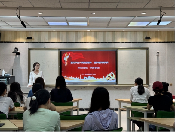 6月27日,公司党委副书记成雅玮为全体员工党员主讲“践行中央八项规定精神,涵养商学新风尚--筑牢纪律防线,书写青春答卷”专题党课。党课围绕“中央八项规定精神的内涵与意义,中央八项规定精神与商员工实际的紧密联系,以中央八项规定精神引领校纪学风建设,以中央八项规定精神严肃考风考纪”四个方面展开,并号召员工们号召师生引以为戒,将规定精神内化于心、外化于行 。随后,观看警示教育片《大学董事长的失色人生》,用真实案例敲响廉洁警钟。