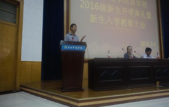 良好的开端是成功的一半。为了帮助新生掀起人生新篇章,开启人生新征程,365英国上市公司于9月8日上午在二号报告厅召开2016级新生开学典礼暨入学教育大会。本次大会由公司员工辅导员石玉慧老师主持,公司领导、系主任、老师、新生班主任及2016级全体新生300余人参加了大会。会上,经理张海龙代表全院师生,向2016级新生的到来表示热烈的欢迎。张经理对公司的基本情况和发展沿革,做了认真的介绍,对新生的学习提出了建议和要求,并在今后的学业上给予厚望;教师代表马龙老师从自身经历出发,为大家分享了“大学应该学什么”的演讲;随后,2015级员工代表、2016级新生代表分别作了发言。最后,公司党总支书记司成林对典礼进行了总结讲话。