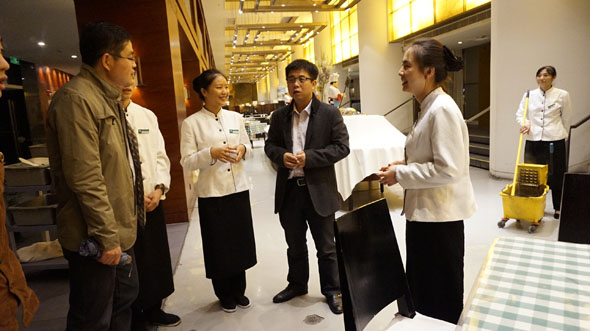 11月24日至25日,365英国上市公司副经理张海龙、张国昀带领相关专业教师赴上海安博教育集团洽谈校企合作办学和专业改造事宜,同时亲切看望了在上海锦江之星实训的酒店管培班学员。张海龙副经理一行首先来到锦江之星看望酒店管培班学员,在安博教育集团华东区域副总经理李林森先生的陪同下与同学展开座谈。座谈会上李林森先生代表安博教育集团欢迎公司领导、老师一行,简单介绍了两个多月来实训生的生活、工作情况,对公司同学踏实肯干、勇于挑战的工作态度表示赞赏。张海龙经理在座谈中代表公司对远离家人、同学和老师的实训生表示慰问,对大家两个多月来个人精神面貌的巨大改变和出色的业绩充分肯定,勉励大家互帮互助、克服困难、抓住机会、踏实做事,争取以优异的成绩完成实训任务,为自己的职业生涯积累宝贵的财富。实训生代表也积极发言,谈感受,说体会,纷纷表示将以优异的成绩和出色的表现回馈父母、老师,为母校增光添彩。
