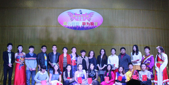 本次比赛启用微博互动,独特快捷的交流平台极大地调动了现场观众的积极性。最后,经过评委评比,来自14级会计二班的卓玛草凭借一曲“我的喜马拉雅”荣获一等奖,剩余参赛选手分别获得二、三奖及优胜奖。由王金霞副书记等出席领导对获奖选手进行颁奖。