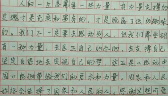 观看《感动中国十大人物》后由各班交上观后感其中他们这样写到: