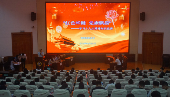 为庆祝建党97周年,重温党的光辉历史,进一步激发公司员工党员、入党积极分子爱党、爱国的热情,坚定共产主义理想信念,公司党支部于2018年6月22日晚上七点半在二号报告厅成功举办“红色华诞,党旗飘扬”——学习十九大精神知识竞赛。参加本次活动的领导有公司党总支书记张跟东,第一支部书记石玉慧,辅导员邓晔、杨增龙和全院员工党员、入党积极分子共计三百余人。