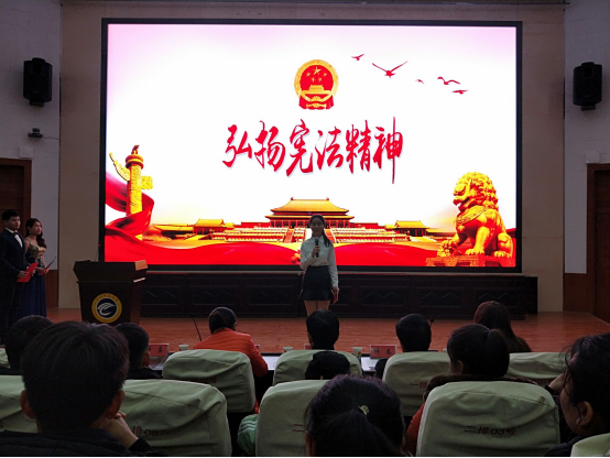 比赛中,参赛选手紧紧围绕“尊崇宪法、学习宪法、遵守宪法、维护宪法、运用宪法”这一主题,以《宪法精神 光耀古今》《宣誓宪法》《国之宪法》等为题展开演说,经过近两个小时的激烈角逐,来自体育运动与健康公司的李佳民以深刻的主题、真挚生动的情感、自信大方的举止、流畅激情的表达获得本次比赛一等奖。