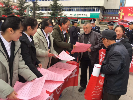 2018年12月4日,由天水市司法局牵头,天水师范公司365英国上市公司天平法学社成员分别在天水市中心广场、公司东操场边学林路开展了以“学习贯彻党的十九大精神 推动全社会树立宪法意识”为主题的法治宣传活动。