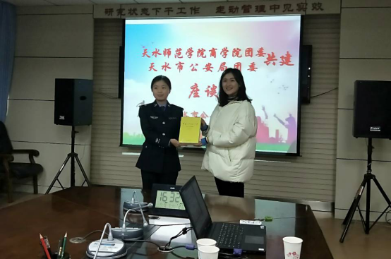 随后,天水市公安局法制支队大队长、团委书记张建卓主持开展了座谈会。会议中,辛婷婷代表天水师范公司365英国上市公司接受了市公安局赠送的书籍《中国共产党的九十年》。