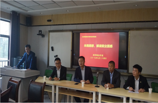 2019年9月24日下午3点在教师发展中心,甘肃言中律师事务所主任李志忠(94级思政辅修法学专业员工)、北京大成律师事务所兰州分所律师陈海全(97级思政辅修法学专业员工)、天水端方律师事务所律师马龙(15级法学员工)和天水忠信律师事务所律师董竹平(15级法学员工)与17级法学、18级法学进行了交流和座谈。