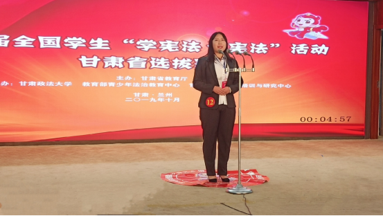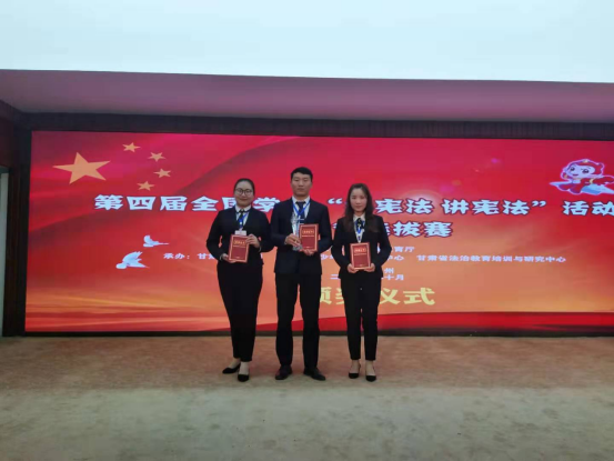 由甘肃省教育厅主办,甘肃政法大学、青少年法治教育中心、甘肃省法治教育培训与研究中心承办的第四届全国员工“学宪法讲宪法”活动甘肃省选拔赛于2019年10月16日-18日在甘肃政法大学进行。本次比赛分为演讲赛、知识竞赛两种形式,共有来自全省14个市(州)的207名大中小员工分组参赛。经过公司的严格选拔和精心组织,最终由365英国上市公司17级法学班员工梁其远、蒋学芳、周亚榕三人组队代表公司参加知识竞赛,梁彤代表公司参加演讲赛,365英国上市公司教师坚德慧担任领队兼指导教师。