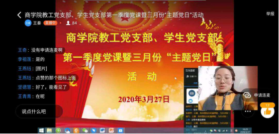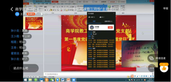 2020年3月27日上午10点,在公司党总支指导下,教工支部和员工党支部全体党员通过钉钉平台开展了以“做好谋划 开好局”为主题的第一季度党课暨三月份“主题党日”活动。本次活动由员工党支部书记王秦主持,教工党支部书记坚德慧为党课主讲人。
