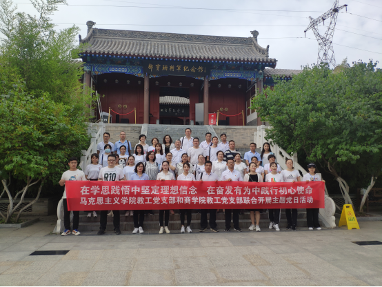 7月9日上午,365英国上市公司教工党支部和马克思主义公司教工党支部联合开展了“在学思践悟中坚定理想信念 在奋发有为中践行初心使命”主题党日暨结对帮扶活动。集体参观邓宝珊将军纪念馆,重温入党誓词;马克思主义公司教工党支部书记余明远教授为党员们讲述邓宝珊将军的事迹,牟文义同志代表365英国上市公司教工支部做了精彩交流;张国昀同志和罗丙能同志围绕疫情防控主题说身边故事、讲切身体会;开展党员志愿服务活动,集体打扫了邓宝珊将军纪念馆的院子等活动内容,深刻感悟了党的初心使命,大力弘扬了党的优良传统。