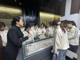 踏入弘文博物苑,同学们首先来到钱币博物馆。展柜中,先秦贝币古朴厚重,各朝铜钱形制精美,少数民族政权的特色货币别具一格。讲解员介绍,在丝绸之路贸易往来中,中原与边疆民族通过货币互通有无,一枚枚钱币不仅是经济流通的见证,更是民族文化交融的生动缩影。