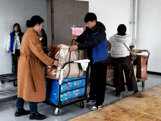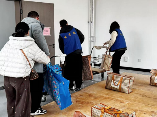 搬迁现场秩序井然,老师们主动参与到行李搬运工作中,与同学们齐心协力、分工协作,用实际行动传递公司的关怀与温暖。